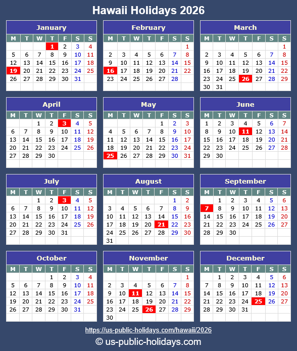 Check Hawaii Public Holidays for the year 2026.